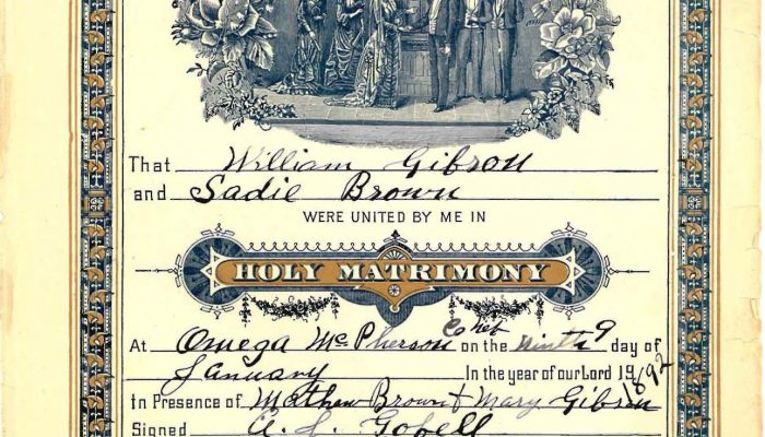 Tagged With: Clarice Irene Gibson, Family Bible, John A. Gibson Sr., Pearl Lucile Gibson, Sadie (Brown) Gibson, William Franklin Gibson, William Gibson