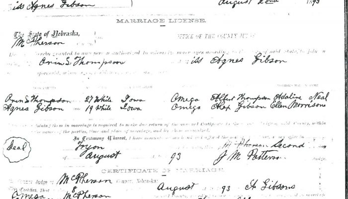 … [Read More...] about Orin Thompson & Agnes Gibson Marriage License