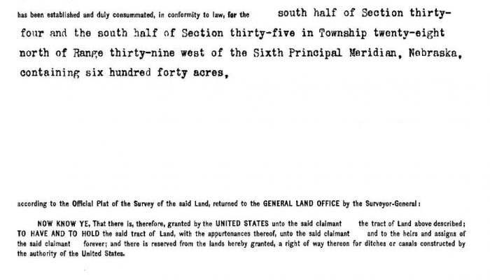 Names on Document: Gibson, John A Issue Date: January 27, 1914 Total Acres: 640 Land Description: S½ Section 34, T28N R39W, Cherry County, Nebraska S½ Section 35, T28N R39W, Cherry County, Nebraska Source: BLM General Land Office Record … [Read More...] about Land Patent 380870